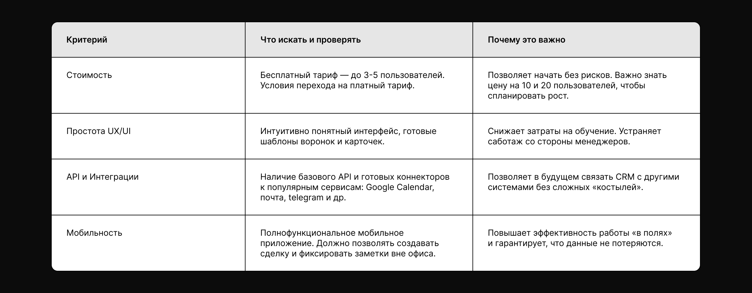 Для старта выбирайте доступные, облачные SaaS-решения управления клиентами. Внимательно оценивайте потенциальные ловушки.